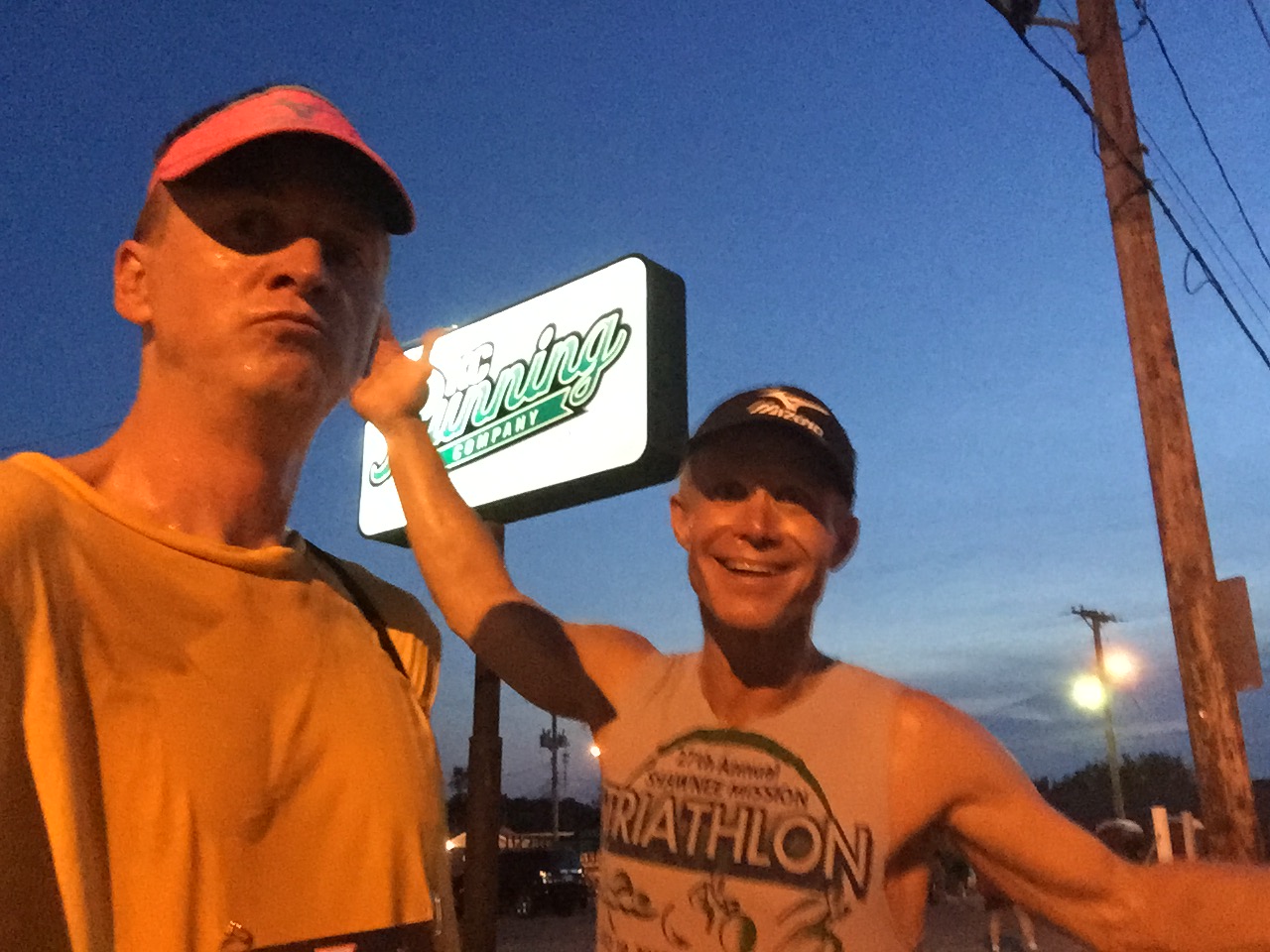 Had a big late lunch and no dinner. Kara gave me and Pete a ride to the race got there right at 6:30 for packet pickup.