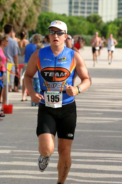 Warm down: Got bottle of water and walked some. The got a muffin. What limited your ability to perform faster: aerobic engine! I wasn't even sore. I felt like I could have gone much longer at same pace Event comments: Great race! One thing was I didn't realize they had a mini-clyde division (185-199). I would have placed second in that category. Oh well, there were only 3 comptetitors anyways, but would have been nice to place since I might not ever get that chance again. My nephew was doign the kids tri and he didn't start to 11:30. Was supposed to start at 10am. Only complaint from race. My race was great. Just too long wait for kids and no real food while waiting. HAd 6 pieces pizza finally at 1:30pm after finishing race at 8:30 and waiting around in hear forever. Volunteers were great, well organized and great course. Last updated: 2004-08-16 12:00 AM