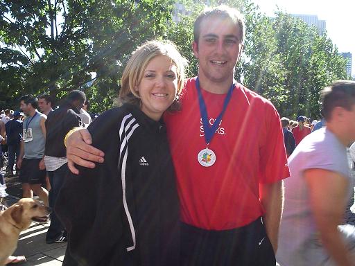 She was recently featured in Runner's World so I was able to recognize her. I went up to her and asked her if I could get my picture taken. She of course said yes. My girlfriend was very suprised when I pulled my camera out and handed it to her. As luck would have it, the batteries died and the opportunity lost and I had some explaining to do. ( side note : Jenn is very attractive)