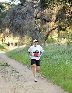 Warm down: Had promised Liz I'd retrieve my phone from the car after I finished so she could call me if needed after her race. So I walked 10 mins. to the car. Then 10 mins. back to the expo. Walked around the expo. Drank some water. Finished the G2 in my bottles. Then watched for Liz to finish. She came in a little later than I expected, but I found out she'd needed a pit stop. ;) We hung around the expo and grazed on the various gimme drinks and snacks. Line for pancakes was just too brutally long to bother with. What limited your ability to perform faster: See above for injury part of the story. Other than that, I don't do trail specific training and this is only the second trail race I've done since HS cross country 32 years ago. Given all that, I think my just a whisker under 8:00/mile performance at my age is pretty good and I'm resisting a sense of disappointment. Event comments: This is a venerable trail HM that is part of the 25 year old "Great Race of Agoura Hills" event, which also includes a 10K, a 5K, a kid's mile, a family 1-mile fun run, and a second (road) HM--which was new in 2009. Thousands of runners of all ages and a big expo. Great finishers medals for the two HMs and the kid's mile. Only gripe had to do with parking: I had a plan for parking near the start, but volunteers with flashlights directing cars into a different lot derailed that plan. I ended up about five minutes farther away than I planned (which sucked at the end of the day)...walking by the lot I planned to park in, I saw plenty of empty spots, but it was too late to go back to my car and move it closer. Don't know what was up with the volunteers, but I talked to others who had the same experience and were pissed about the added (and unnecessary) walk. Last updated: 2008-10-31 12:00 AM
