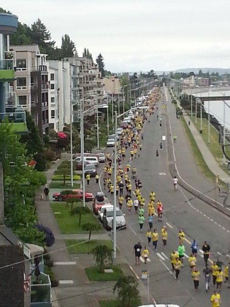 The West Seattle 5K was actually the very first 5K I ever did 2 years ago! So, it was kind of fun to revisit. Plus, it's in my hood so that is even better. A few friends came down to run it as well and they were commenting on what a nice event it was. West Seattle is a very close knit community and it definitely shows. I was telling my friends that it's probably my favorite local race. Just as I was talking about what a beautiful area it is blah blah blah, the trash can near us caught on fire. Awesome. A perfect demonstration of the beauty West Seattle has to offer.