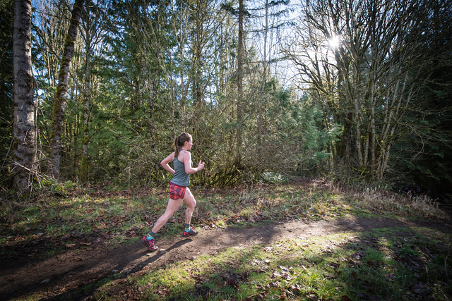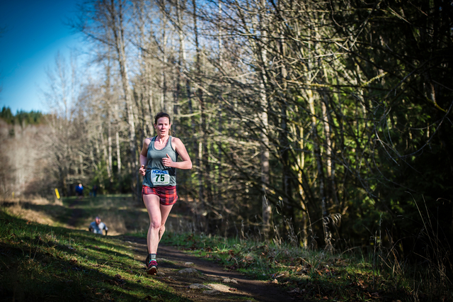 Comments: I have gotten smart over my trail running career (this being race #2) and lined up near the front. This was especially important due to long single track uphill sections. The RD gave a rundown of the usual hazards, creek crossing, blow-downs etc. Then made sure to say, "THIS. IS. NOT. A. ROAD. RACE" We took off and were immediately faced with a small creek crossing. I had 3 options: to try and jump it, to use a wood 2x4 or to just run through. Not that I had much time to think but the 2x4 was all sorts of muddy and wet so I opted to jump. I baaarely made it across but my shoe sunk down pretty far into the mud and my shoe filled with water. We funneled into something of a double-track that followed a rough jeep road around and up the hill. It got steep quick and I passed a lot of people. I was with a pack of about 6 guys as we picked our way along the rocky path. Eventually it got narrow and turned into muddy rocky single track. The 6 or so of us were in a pretty tight pack so visibility was poor. I didn't want to give anything up though because I knew the BIG hill was coming and I didn't want to get stuck behind too many people. I was feeling the burn immediately. My lungs were on fire from the uphill exertion. It was clear the cardio was the week point here. The legs felt great! We got to the very steep hill and I settle into my uphill goat mode. The hill is short, but about 600' of gain. I kept my cadence high and my stride nice and short. I did my best not to look towards the top and kept my focus on each step forward. Once we crested the hill we could see a series of smaller hills. I was pretty gassed but tried to capitalize on the downhills and "recover" on the up. I let gravity pull me down and really forced as fast of turnover as possible. I had asked some folks about how I can get faster on the downhills and through their feedback I realized I really should be working on cadence and staying way up on my toes. It was really effective. The cadence thing was something I had to really focus on because I tend to fall into my natural rhythm. But upon consciously "road-runner-ing" (my own made up term) I really did find myself descending more quickly. I wasn't entirely sure where I was in the pack but figured I was maybe 4th or 5th OA. I hadn't seen any women at all so really I was just trying to stay with the guys. There was a short downhill just before the single-track portion and I used my road-runnering to glide past 2 of the guys then ducked into the forest. The trees were incredibly dense and the trail was twisty and technical. There were roots, mud pits and trees to hurdle. When I was younger, getting to my childhood friend's house meant going through "the woods" I was scared of them so I ALWAYS ran through. Running this single track reminded me a lot of that and it brought a smile to my face as I weaved in and out of the forest. The single track broke open onto a fire service road again and I let my stride open up a bit. I passed what looked like the turnoff. It was marked in orange with a curve. I stopped, and went back and looked down the trail. There were orange markers tied to the trees. This was what they were using for our course so I followed the trail through some ankle deep single track. At this point I had passed all of the men I could see but I wasn't sure if there was anyone else ahead. I flew through the muddy single track, feeling the mud spray up my back, onto my face, in my hair. When I was about to complete the small loop (maybe 1/4 mile) I saw the men I had passed earlier coming towards me. "You did the loop backwards" they said. "Just follow us" So I about faced and ran back the way I came. This was a total bummer because now I had to go back uphill in the muddy single track and I was basically doing the loop again. Oh well. My bad for not knowing if the loop was clockwise or counterclockwise. We finished the loop and then headed back down towards the finish. The course took us a less steep routes that more or less switch-backed the "face" we ascended on the way up. It was all single track so I stayed tucked behind the two guys. On a bermed curve, I was able to run high and pass one of the guys. I used my momentum to propel me into the final steep section towards the finish. The steep road turned from gravel to asphalt and although I was trying to keep my turnover really quick, I could feel my feet pounding the surface. I really had to pee. I pulled ahead of the guy, letting gravity take me down, doing my best not to fight it. The guy accelerated past me which I was slightly surprised by since he knew that I had run an additional loop I weighed the pros and cons of chasing him down. I really had to pee and I didn't really see myself as "in competition" with him so I decided it wasn't worth peeing my pants. At least not this time. I ran through the finish chute for the overall women's win. This race is part of a series and a win is really beneficial in the points standing. They take the best 6/11 races and there is a cash prize. I was really, really happy with my performance and my good early standing in the series, especially my given inexperience in trail racing. These trail races are so challenging. I have about a 7:15 marathon pace - 5:5x 5K pace yet almost a 9:00 5 mile trail pace LOL What would you do differently?: Pee a little closer to the start, not get lost, continue to work on my downhill form ![]() Post race