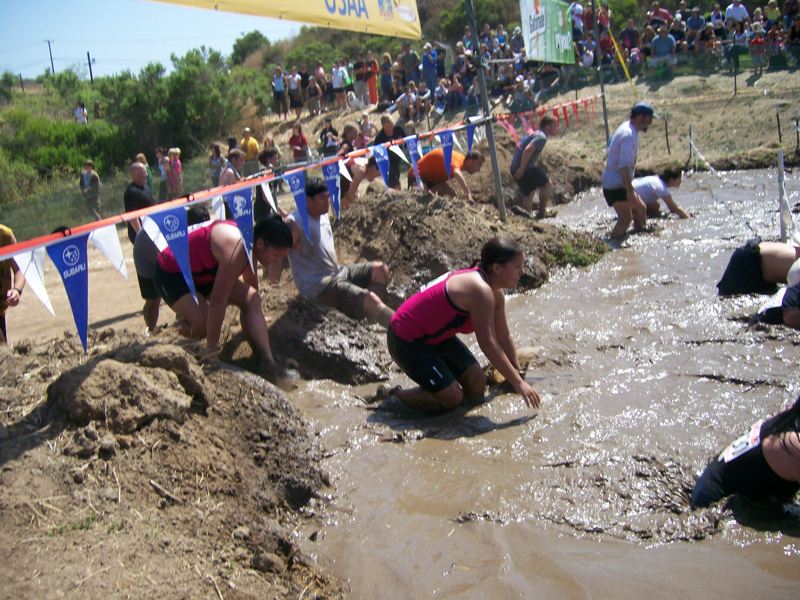 Comments: I ran at my sister's pace, which is somewhat slower than mine, so I was never uncomfortable and I was able to enjoy the whole run. I fell off of one of the walls and landed hard in the mud, and at one of the mud banks I tweaked my right knee a little. The lake crossing was fun. During most of it I could barely touch the bottom, but there were so many people moving through it, all I had to do was float and I kept moving forward. Coming out of the water and running wet reminded me of a triathlon, and as I was thinking that a guy behind me said "where are the bikes???" The finish was a little confusing, since after the mud pits they had rows of pipes spraying water, and a lot of people were washing off while the clock was still running. What would you do differently?: Bring my own beer! ![]() Post race