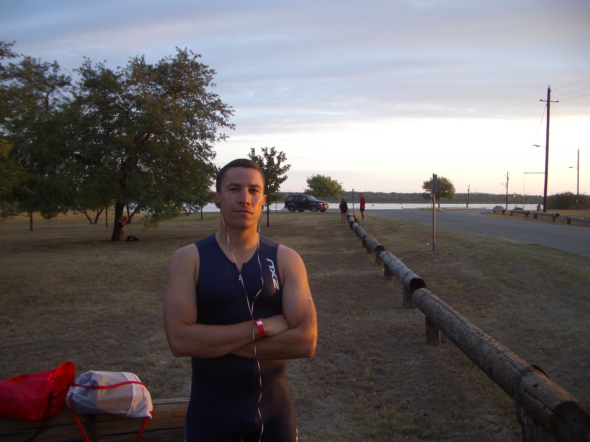 Woke up at 0500, ate a clif bar, sipped on cytomax and headed to the parking area. set up transition and listened to my shuffle while focusing on the race in my head.