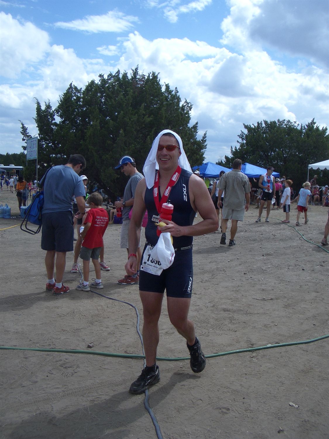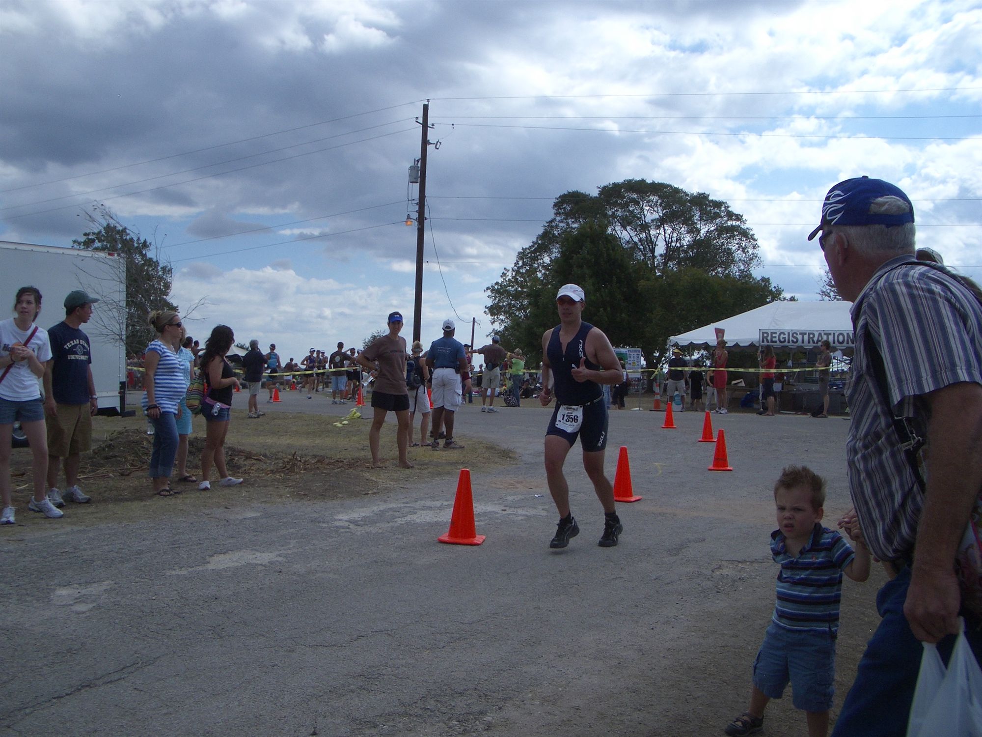 Comments: this is where my weakness lies. i knew i was out of my league on the bike when i started the run, EVERYBODY flew by me!!!!! i fully expected it. starting on the run it felt like i had a stress fracture at the base of my right 5th toe. everytime i took a step, i felt a deep "bone" pain. about 3/4 of a mile into the ride, the pain subsided, but then had difficulty getting into a breathing rhythm. heading back into the park, seeing my wife must have done something for me, because i felt great after that. hit quadzilla and trudeged up it slowly but steadily. thats about it. overall a miserable run. i have found my focus for the off season!!! What would you do differently?: train more on running faster. i had the distance down in training, and i could have ran forever. speed, speed, speed!!!! ![]() Post race