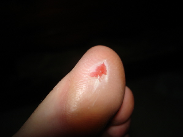 They had some crappy stairs set up to go over the wall into the water. Well, wouldn't you know, I'm headed down them and I SLIP. I hit the rock at the bottom of the stairs pretty hard and my toe was killing me. After I got away from the ladder (couldn't stop...too many people behind me waiting to get in) I took a look at my toe and I had gouged a HUGE chunk out of the bottom and it was bleeding. Great. Just call me shark bait. It was hurting a lot the entire time I was treading water waiting to start. The race started very late...took quite some time to get everyone in I guess. Then I have no idea what the hold up was after that. I didn't look at my watch but we started 20-30 minutes late I think.