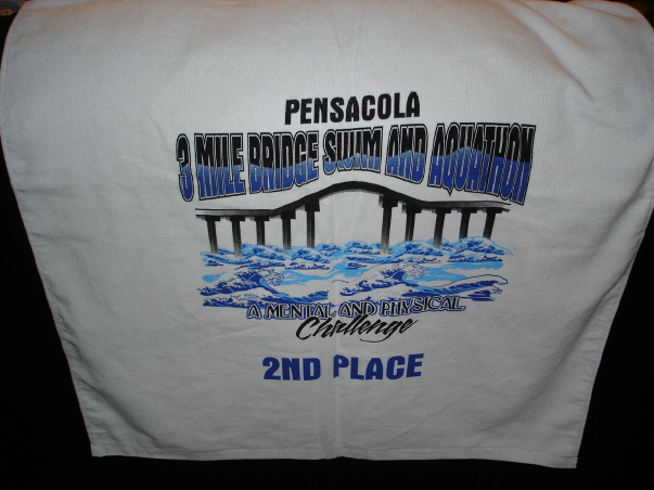 Warm down: I had to walk across a bunch of sand after I got out of the water. The gouge on the bottom of my foot LOVED that. I walk up to the pool and retrieve my dry clothes bag...mostly for the sandals. Then I am desperately searching for a place to wash the sand off my foot and I spy a shower thing by the the pool. Those bastards must use salt water for the shower because the stupid thing had me swearing when I tried to wash off my foot. Hurt SO bad. So instead I sat on the edge of the pool to try to rinse the cut out. That also hurt, but not as badly. I put my pants and top on and limped around for a bit. Got some recovery snacks (mmm...Rice Krispie treats) and tried to find my the girl I knew. She must have split as soon as she got out. I was just getting ready to leave when I heard them say that they had prelim results up. So I went to take a look and I had come in second in my age group...mostly because there were only three of us! This meant I had to hang out until the awards which would not be until 11am. I trooped to the car to get better dry clothes and changed. I also found better sandals and eventually a first aid kit so I could at least put a bandaid over the flappy skin on the bottom of my foot. A lot of sitting around later, we had bbq and awards. Oh joy. What limited your ability to perform faster: I am fat. Event comments: Okay my comments: 1. Measure the damn course. 2. Everything was late...it started late and awards started late. I should not have to spend 10 hours to do a simple 3 mile freaking swim race! 3. Good BBQ during the awards though. 4. Come up with a better way to get swimmers into the water at the start. They are talking about doing a 10k next year...out and back from the finish beach. That will be nice because the entry will be better...but I hope they GPS it from the beach...because I am really convinced their idea of "3 miles" is long. I guess this swim race was really just about battling some demons for me. I have a serious fear of swimming in the ocean because of ocean life. I'm not convinced I helped myself at all, but at least I tried. Last updated: 2009-03-11 12:00 AM