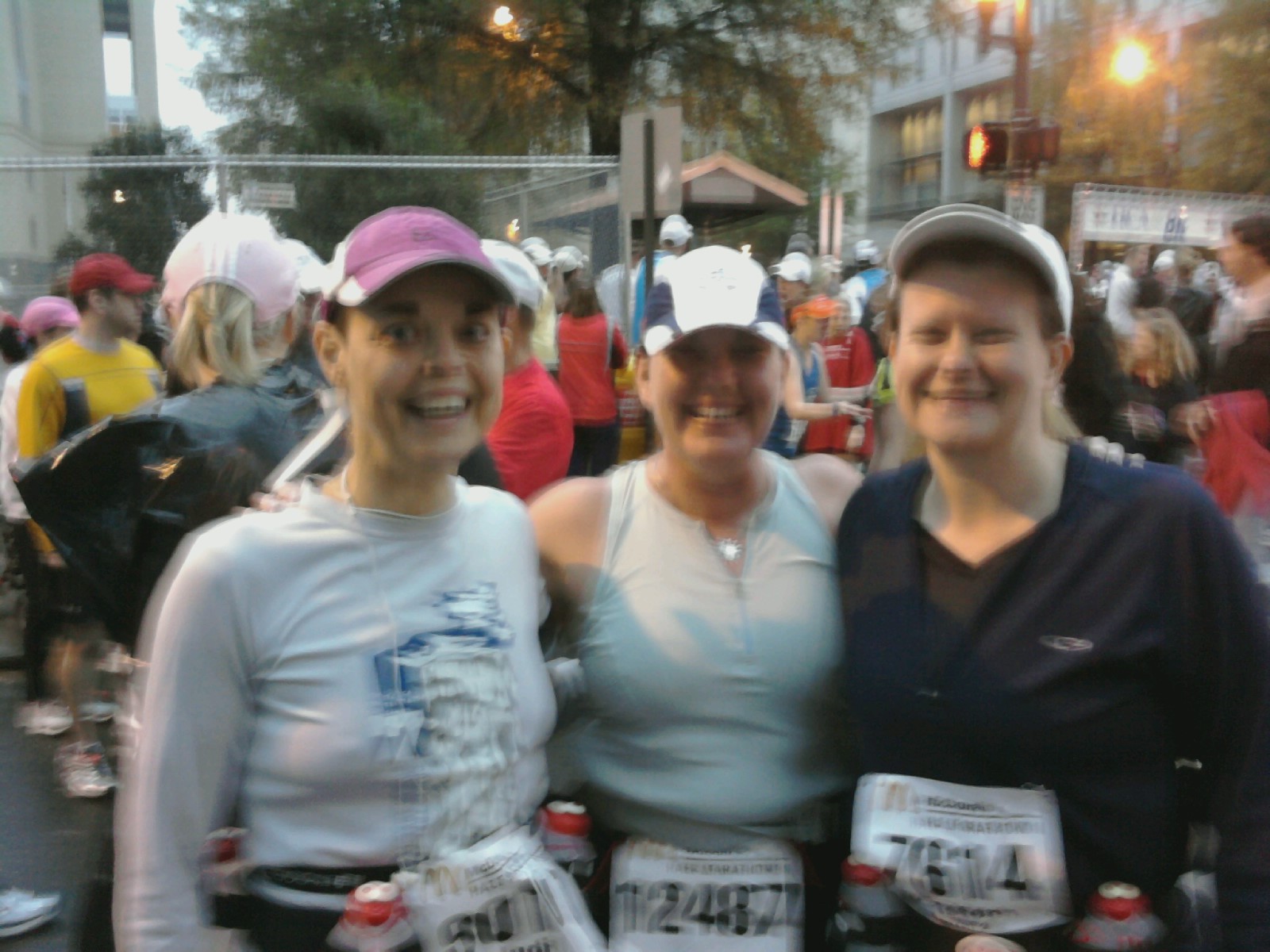 Waiting in line for the portapotty and Kristen found us. Yay! A pre race Nibbs pic!!