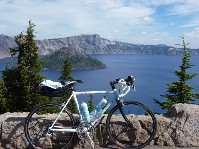 Comments: I expected this ride to be a challenge due to the elevation, but there was also considerably more climbing than I had anticipated. We intentionally skipped the 18 mile out and back in the valley and headed straight up to the lake from the start. I didn't need another notch in my 'century belt'...but I wanted to ride the rim of Crater Lake. The initial part of the climb was in a very wooded area and it was a relatively low grade climb. It seemed to go on forever though! Once we made it to the rim, I somehow thought the worst was over...it wasn't. Cross winds, cold temps, and torn up road...along with many more multi-mile climbs made the Rim Drive part of the ride a serious challenge. The metric century only rides to the rim and then back down. We wanted to do more than that and even though it was challenging, I'm super glad that we did it. It was gorgeous! The nice part was that from mile 60 back to the start was pretty much 100% downhill. I think the biggest challenge was mental. When you are only at mile 30 and you look down and see your speed at 6 mph, it's difficult. It just feels like you'll be out there FOREVER. The good downhills made up for all the climbing a bit. I expected our avg speed to be closer to 10mph...so the fact that we had 13 mph made me pretty happy. I did not have any idea what the elevation profie OR the rest stop locations were prior to starting out, so I felt like I was riding a bit blind. I didn't know how much to hold back because I didn't know when the climbing would end! What would you do differently?: Next time I'll have studied the elevation profile and the rest stop locations more closely so the mental battle isn't quite so huge. Other than that, I'm pleased with how the entire ride went! ![]() Post race