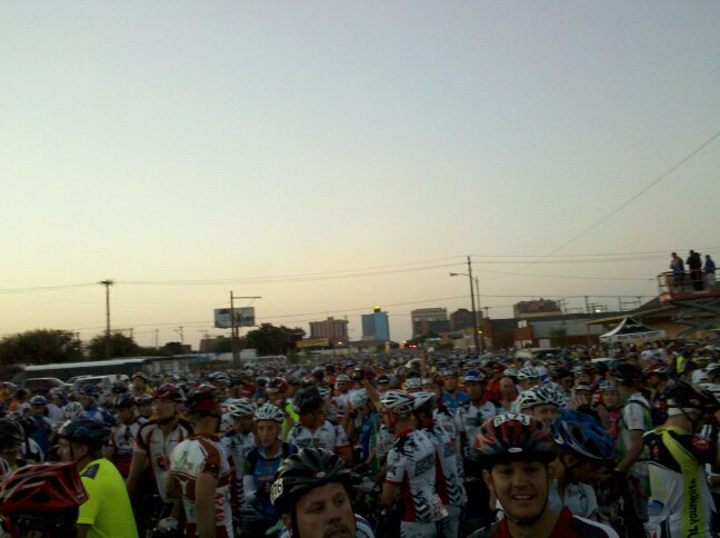 Woke up at 5am. Got dressed, ate a peanut butter bar and drank some water. Aired up my tires and double checked everything. Met up with my friends in front of our hotel at 5:50am to ride over to the event (maybe a mile or so away).