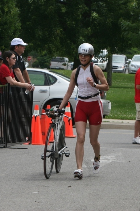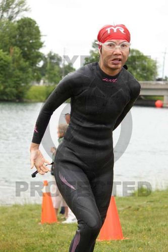 Comments: First mass start for me. More manageable than expected, esp after hearing all the horror stories about Guelph Oly. Wetsuit was cutting into my neck 400m into my swim, hurt everytime I breathe. Then both calves started cramping with 400m to go, have to flex ankle at right angle, esp right one, to keep cramp from getting out of control. Overall, this is a good swim for me. Finally MOP instead of BOP, even at such high level of competition. Probably could be a min faster if the wetsuit was not cutting my neck and I could kick properly w/o the calves cramping. What would you do differently?: Double check to make sure wetsuit velcro flap is properly closed. I think the wetsuit was cutting into my neck because the velco flap wasn't properly closed. It has happened one other time. 24hr later, it looked very bad, with 1st layer of skin all gone. OUCH! ![]() Transition 1