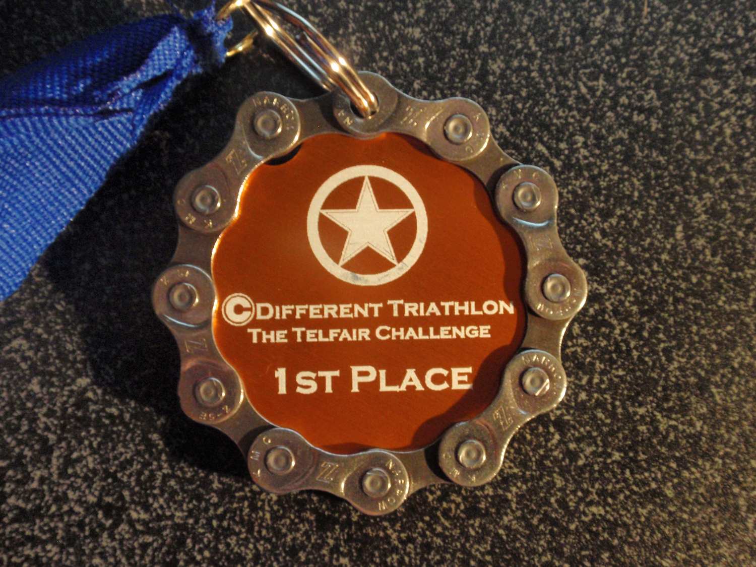 Comments: Felt some pain between my big toe and the one next to it on my right foot almost immediately. Tried changing my foot position but nothing helped. Just knew I would have a big blister when it was over but nothing that would slow me down. Fought through a minor side stich and tired legs the first mile (which is normal for me) but still passed the first mile marker at an 8:20 pace, so I knew I was in for a good run. 2nd mi was also around an 8:20 but really picked it up the 3rd mi. Course was just awesomely flat and some nice scenery around the small lake and community. Some wind to deal with on the way out but the houses helped block a lot of the wind we had on the bike. AS I was coming withing a 1/4mi of the finish I began hearing people in the crowd yelling 'pass him'. I looked over my left shoulder and notice this guy right on my tail. I sped up and people kept yelling at this guy to pass me. My fight or flight took over and I fought. As I kept speeding up, so did he...I realized this would be a good battle. We turned the last corner with about 50y to the finish. I went into an all out sprint...something I had not done since high school!! My legs didn't know what I was asking of them but they kept pushing and fighting until the end. I ended up beating the guy by a second. He must've been known in the area as everyone was cheering him on, but I beat him to the line. I still don't know who he was, but after we crossed I looked back at him and we gave each other a good handshake for a tough battle. I had won! :) What would you do differently?: Figure out why I got this blister. Never had a blister here before, so not sure what caused it nor do I know what I could even do about it since it is between the toes. Maybe get those socks with toes would work but not sure how difficult they would be to get on in transition. ![]() Post race