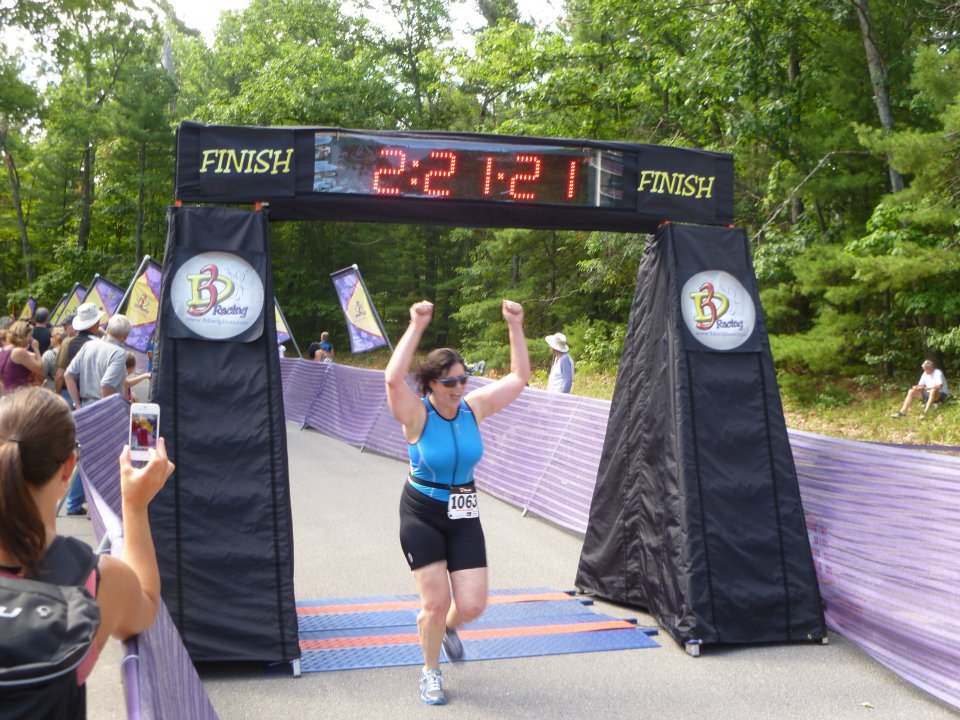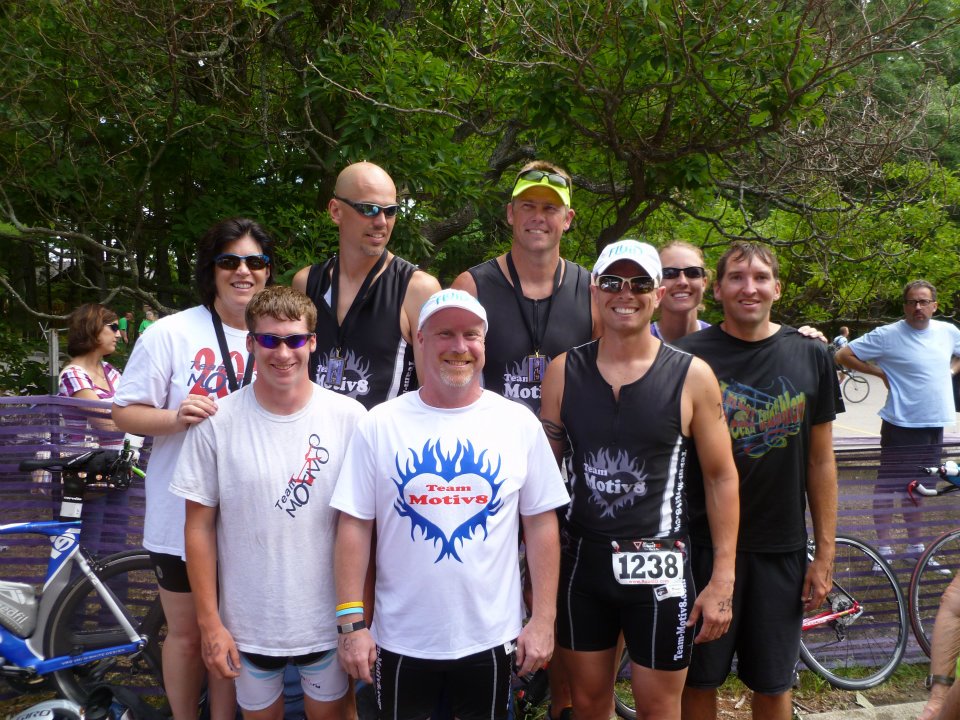 Comments: I was sucking air from the beginning. Again, I have not really practiced a decent brick in 3 years. My legs were not the issue. My breathing was very short. I kept feeling out of breath. I am sure now it is from the half cup of bad coffee in the morning and only about 6 oz of nasty tasting heed on the bike. I was so dry when I was running. The aid station at "mile 1" seemed to be forever and then lo and behold the 1 mile marker was still another 0.25 miles up from the 1 mile water station. Whatever!! Lots of "encouragement" every time I walked, which was often. I heard things like "slow and steady but keep running", "run-you are almost there (only 3 miles to go), come on-run, you can do it-just run, etc... At one point Becky (my captain's wife) yelled to me "come on Joanne, run up that hill". Darn you Becky-every one up the hill heard her so then I got from several spectators-"come on Joanne RUN". All of this did encourage me and when people said things like this, I did not flip them off (as old jogo probably would've done) but I did run. I also heard from my team mates, "you look good", "you've got this", team Motiv8 in the house" and the best "I'LL HAVE THE BLOOD MARY'S WAITING FOR YOU AT THE FINISH LINE, YOU LOOK LIKE YOU NEED SOME ELECTROLYTE REPLACEMENT". I love my team!!! What would you do differently?: I gave this my all. The run/walk was all I had in me. I would've liked to have run the whole way but it was the best I could do. ![]() Post race