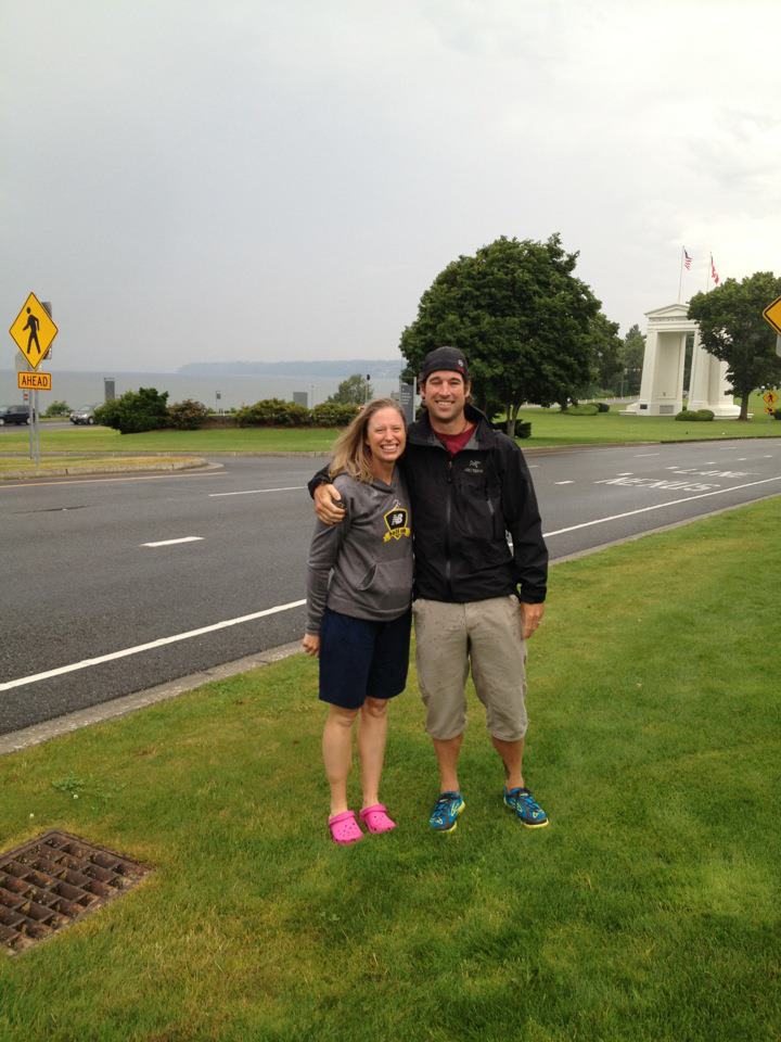 First stop: Starbucks. Next stop: Gas. Third stop: Peace Arch (Canadian border) in Blaine, WA for the initial check-in and race start. It's pouring rain. Sucks for the first runner, ha! Van 1 undergoes a safety briefing and gets ready to roll for our 9:15am start. Super fun listening to team introductions -- there are some VERY creative people out there in terms of names and such. We were Team Average. We came up with more clever names but they were too late to change, so Average we were!!