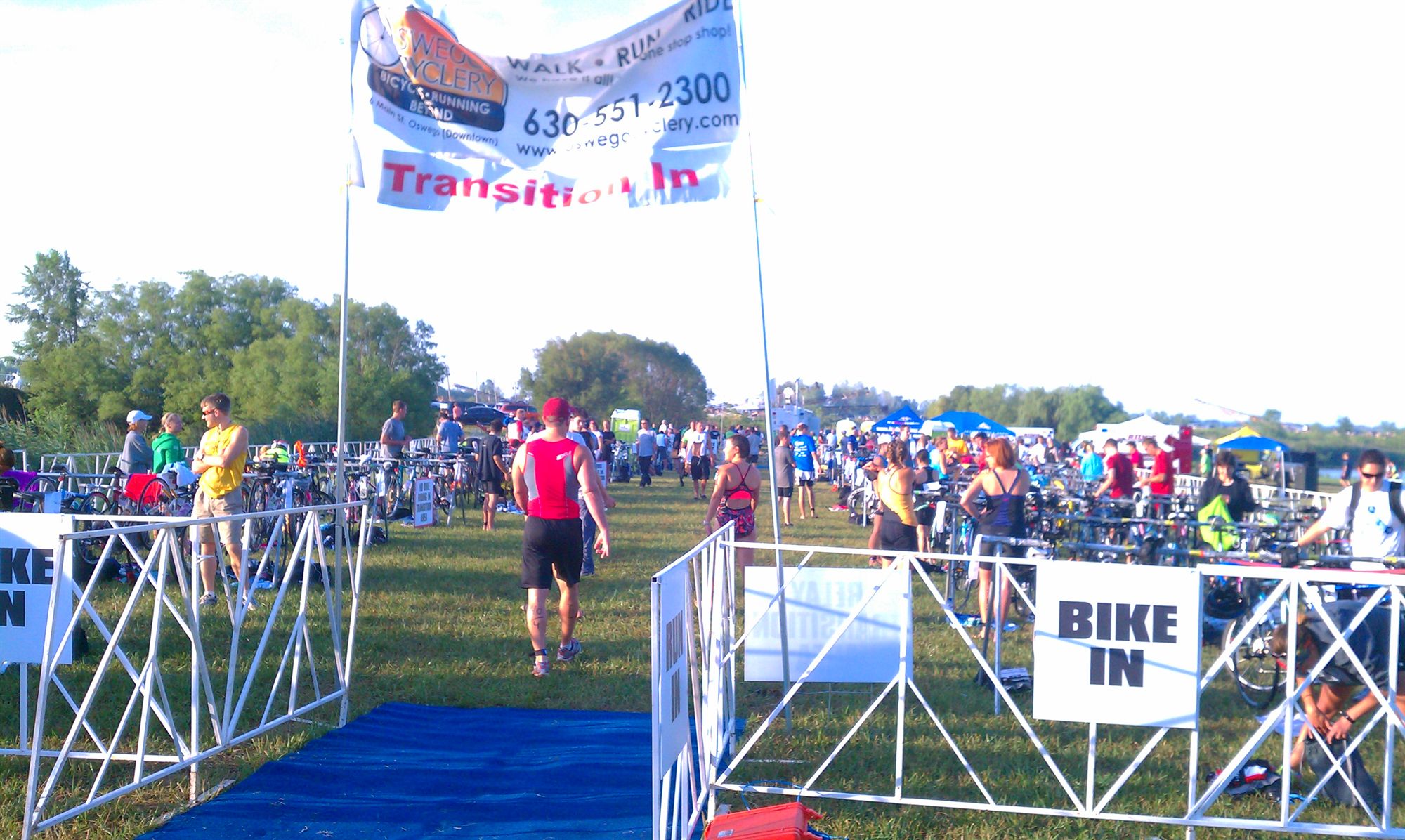 Comments: Things went well. Not "35 seconds" well though! Not sure where the timing mats were but I was not that fast. I got everything done in a hurry though and got outta there quickly. What would you do differently?: Nothing! This went really well and I even sighted a good path to the bike mount line which was after a slight hill that was full of gravel. I was on the left of my bike as I ran along out of T1. I stayed in the grass and totally avoided having to run on the gravel. I ran way past the mount line and did the flying squirrel and I was off! ![]() Bike