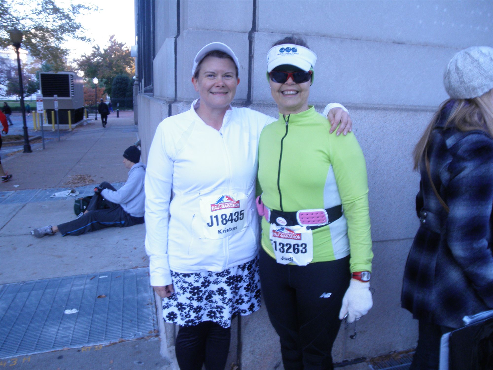 Walked up to the start area trying to find Jen who was running the 8K. Never did meet up pre race, but Kristen and I found each other and hung out trying to keep warm.
