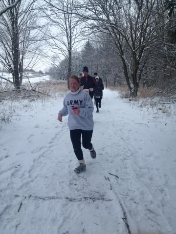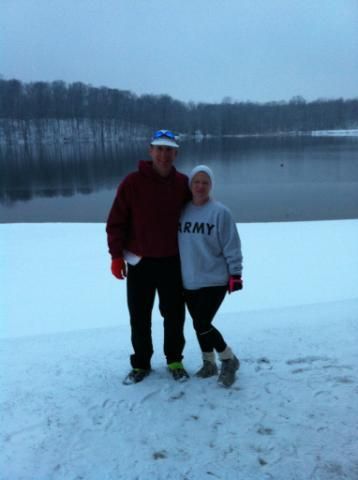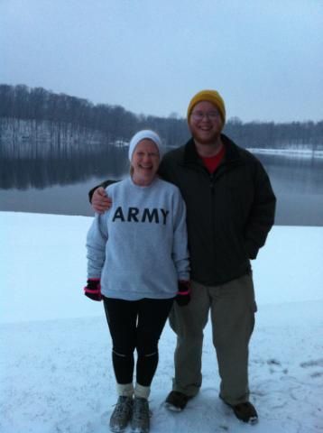 Comments: I am very happy with this race. Going into it, I set a goal time of 3 hours because I had not run in snow and ice before. My previous trail run was in the rain and mud at Farmdale. It had snowed overnight so everything had this magical, mystical feel and look to it. I kept thinking that if it snowed during the run I would feel like Mary Tyler Moore when she was singing the theme song for her TV show. Lucky for me, that song was then stuck in my head throughout the race. I found a runner that had set a nice,sweet pace and I followed him for quite a ways. We got separated when I ran into 50k traffic, but he was always within sight. He let me know when we hit the 5 mile mark and I glanced at my watch and was pleasantly surprised. At that point I wondered if I had a 2:30 in me. I knew it would be close, doable, but close. I also realized that if I could get there by then I would have a much better chance of seeing Mike come through for the end of his first loop (which I did get to do :) ) Somewhere along the trail Jungle Jenn caught up with me and surprised me with a picture. She made me laugh! She always makes me laugh! Lots of friendly runners. Couple of the 50k'ers ran with me for a bit and chatted, like they weren't racing! IT was just such an awesome race for me! The scenery was absolutely stunning! The freshly fallen snow on the trees, the ice shimmering off of the lake, the old wooden bridges that creak with each step, and the scurry of animals in the trees just led to an awe-inspiring race. What would you do differently?: NOT A THING! ![]() Post race