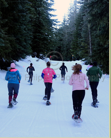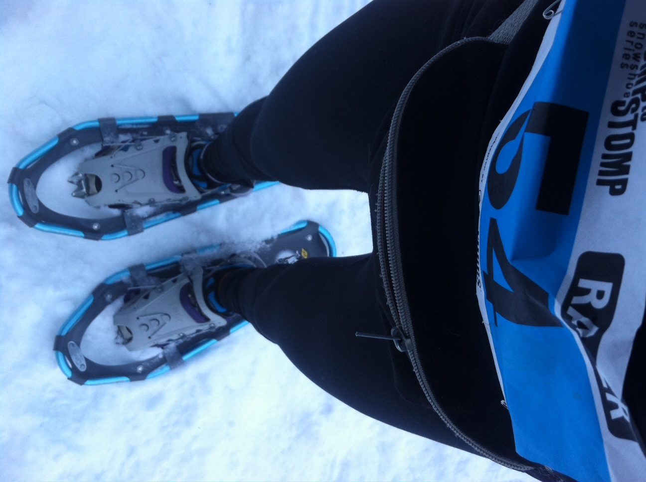 I got there JUST in time. I hustled to the start line, tightened my snowshoes and then it was "On your mark, get set, GO!" and we were off.