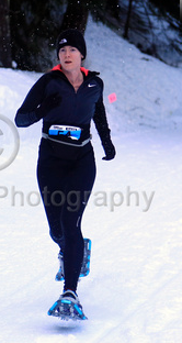 Comments: This was my first snowshoe race. In fact, it was only the second time I have ever been on snowshoes in my life. Luckily I read a few "quick tips" before the race and I am glad I did! Running in snowshoes is one of the hardest things I have ever done, especially on the uphills. I was pretty much at max aerobic capacity. Once we started up the hill the three of us separated from the rest of the pack and never saw anyone else again. The people that finished behind me were almost a full 5 minutes behind. The two in front of my had more running specific snowshoes and it was pretty clear how much more efficient they were. Mine were a little clunky and a little wider so I had to run with my feet apart a little more. Anyway, I guess the race was fairly uneventful. I couldn't *quite* keep up with the other two yet no one was around me to race. The 3K went by pretty quickly and it was a lot of fun. I gotta say though, I was really glad to be finished. My throat hurt like a mofo from breathing so hard in the cold. I had the sexy raspy voice for the rest of the day. I ended up first in my AG, 2nd woman overall and 3rd Mens and Women. What would you do differently?: Run faster? :)  Post race Warm down: Ran to my car, ate some food, BSed with some people by the fire, met up with my friends and did 3K walk with them. After the awards ceremony I went snowboarding for a couple hours. (see my last photo below) It was beautiful! What limited your ability to perform faster: non running-specific snowshoes. Event comments: I won a whole bunch of coconut water, a message and a pink Nalgene water bottle :) Last updated: 2012-12-19  12:00 AM |