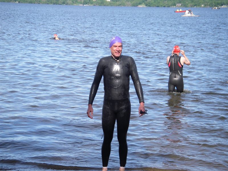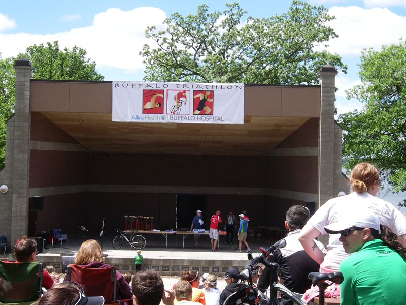 Warm down: Drank some water, got my stuff and went to the car with Barb and changed. By the time we got back only food left was cookies. I think they had hot dogs this year. Brought back some Mt Dew so I was good. 1st place in AG got a Bontrager pump, 2nd got Tifosi sun glasses and 3rd got socks. I would have been 4th in 50-54 and 5th in 45-49 AGs so my time was decent. Award pic here. Scroll down to 55-59 http://www.tribuff.com/awards_13.htm#olympic What limited your ability to perform faster: Good bike, great run but sub par time on the swim despite feeling I did well. Swim is my limiter. If I'm going to do well at Nationals, I need to improve my swim time. Time for a swim coaching? Event comments: Buffalo does a good job for the size of the race. Disappointed no food left for me but I could have grabbed some before going to car so my choice. Jerry got thru the awards in a good fashion. Got my pic taken with AG podium finishers and it should show up on race web site. Talked quite a bit afterwards with Lynn the 2nd place guy in my AG from Bismark. Last updated: 2013-06-10 12:00 AM