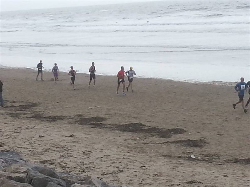 Comments: Supposed to be 3km but garmin measured it at 2.75km, may have been because of the switch back at the turnaround. Felt like 1.5km out, but 3 km back with that wind. Plus the sand was softer under foot than expected due to the sand still being wet. Plus we had to dodge loads of seaweed/driftwood. Really difficult to pick my way through the crowd at the beginning, a lot of bunching going on due to lack of space to run. What would you do differently?: Not expect anything different with a gimpy foot. ![]() Transition 1