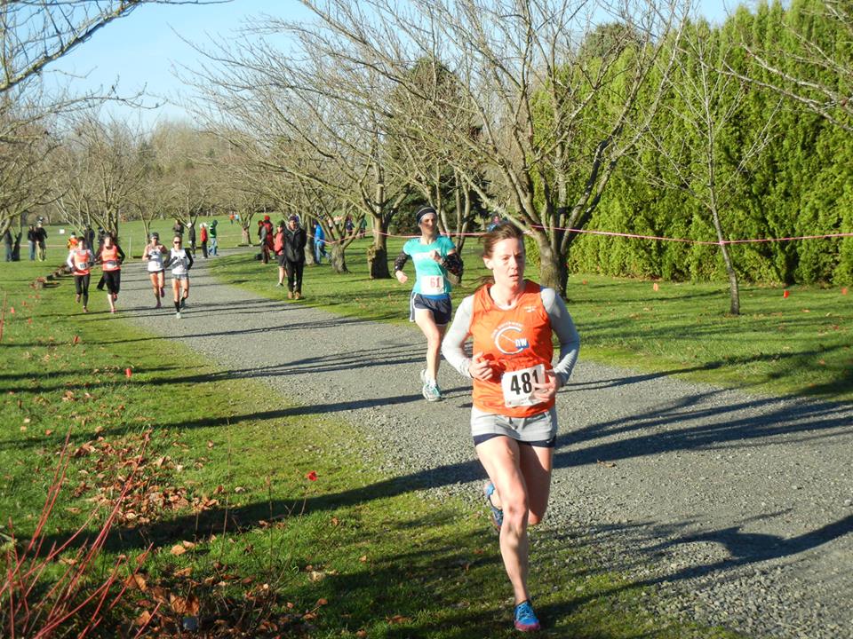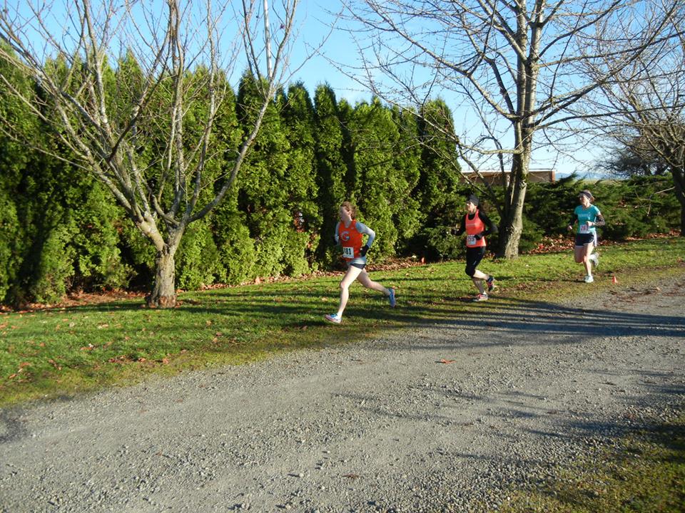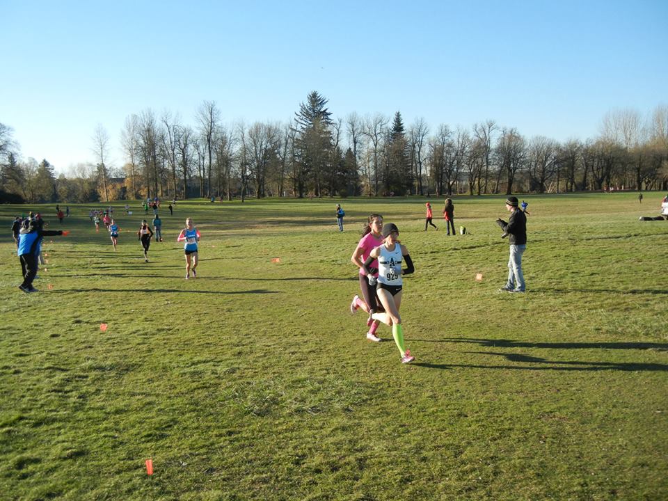 Comments: Post warm up we headed over to the start as a team. Kara was looking for someone to pace off of and I kindly bowed out of that one (LOL!) It was hilarious, I never thought I would be talking race strategy with an Olympic marathoner while I was taking off my pants (warm-ups.) One of the guys on our team came around and put orange war paint on our faces right before the start. I was so effing cold. I was wearing my long sleeve under my singlet (which I NEVER DO.) Last minute I decided I couldn't stand it and was going to take it off but they were doing last call to the start box so I had to suck it up. I lined up and they blew the starting horn, kind of unexpectedly. We all took off like a herd of horses. Wait, are horses grouped it herds? Gaggles? Shyte I don't know. Anyway, we were off. The course was flat which is not really my strong suit. I was really hoping to be able to attack the course despite that. My plan was to take the first loop a little conservative and then progressively apply pressure. A small group of my teammates were about 3-4 seconds ahead. Because I was going to be conservative I decided not to close the gap. Big fucking mistake. The wind was so intense it was VERY difficult to run in. I hit the 1K mark and there was a girl slightly ahead of me. My coach yelled for me to close the gap and tuck in behind her. I did. We continued on but her pace seemed a touch slow so I waited to get out of the headwind when we rounded the corner (the wind turned to a cross wind at this point) and pulled out along side of her and made my move. This was executed well but it catapulted me in between two packs of runners. One pack about 15 seconds ahead of me (where my teammates were) and one about 15 behind me. Being solo in this kind of no-mans land in the wind is like a little frosty slice of hell. I tried to surge and catch the group in front but the headwind made it nearly impossible. I entered the 3rd loop with a goal of catching the group. It was a long shot. I surged with desperation. I was STILL cold. Wasn't even breaking a sweat it was so cold out. I had no one to work with in the wind and my surges were very tiring. I was gaining some ground but not nearly quickly enough. I was watching my teammates working together, just killin' it in the wind and here I was, all alone. It was awful. We rounded the corner and into the shoot and I put the hammer down, against the wind and crossed the finish. I might say this every time, but I have never been so happy to be done racing. Now many of you have congratulated me, and thanks for that, LOL! But this wasn't a great race for me. I am so, SO proud of how my team did. We ended up winning the meet which is HUGE considering we came down to Portland, Nike country, and put up a big W in their backyard. But I am really disappointed in myself and my decision making. I recently got a 5K PR and have been practicing at a higher level so I think I may have come into this a little tired. But, as my coach says, there aren't peaks without valleys! As much as it sucks to feel this way after a race, it's a great opportunity to learn some things and put them into practice for the next races. This season has been a truly incredible learning experience. Onward we go. PS One big win for me was that my shoes neither came untied nor did the insole come out. In fact, no shoe issues at all. WIN! What would you do differently?: Lots!!! Hoping an actual taper for Nationals will give me the zip in my legs that I'm lacking. Also, decision making! I won't do THAT again!  Post race Warm down: More like warm-up description! Just ran the park for a really long time with my teammates. What limited your ability to perform faster: Poor decision making Training through the long season of racing Faster training paces that I'm not totally used to Event comments: (The 4th photo is Kara making her move to inevitably win the race. She's in pink) Last updated: 2013-11-18  12:00 AM |