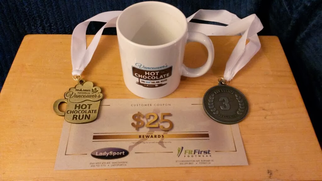 Comments: Wooooot! 3rd woman overall. Whaaaaaaat? I have not been on a podium since I was a kid :) I was standing at the start and I got asked by a couple women if I knew if the 10km was starting first and then 5km. I said yes, then chatted with one of them for a couple minutes. 10km was off, so I went up to the front for the start. <-------------------- That is funny in and of itself. I NEVER start at the front. But, what the hell. I am thinking a goal time of 25minutes, but not sure if it is doable. The first 500ish meters was downhill, and was fast. First km was 4:41 which is redonculous, but downhill, so okay. I was going to tell myself to back off, then I thought, nah, I'm not going to 'arbitrarily limit myself'. Someone once said that to me. So, I am merrily running along, going at a fast but not outrageous pace. I hear someone coming up behind me and just sort of hanging there. I knew it was a woman--not sure how I knew, but I did. I knew I was up towards the front as I hadn't really been passed by anyone. So, she goes past me and it is the woman I was speaking to at the start line. She has on a lime green shirt, so easy to spot. I figured I would just tuck in behind her for a bit, keep her close. We hit 2km and it is 5:09. Ok, slower, but no downhill. I'm ok with the pace, but figure I can pick it up a bit. Maybe 25:00 IS possible. Green shirt still just ahead of me. I pick it up just a bit, and I go past her just before the turnaround. I figure she would come back up, but I just keep running my pace. I am counting women coming back after the turnaround and I count 2. Hmmmm, this is interesting... Approximately 3km and I hear someone behind me--nope it's all good it's a dude. Hit 3km at 5:06. Mentally do the math: 4:41 leaves me 19seconds, I have used up 15 in km 2 and 3. Gonna have to go, Wilson! Just past 3km, my right hamstring feels a little tight, but nothing comes of that, phew! I get to 4km at 4:58 and I am now thinking about puking. I decide to hold off on that :) As I turn the corner to start up the hill to the finish, I look back for green shirt--she's a ways back, but close enough to catch me if I slow at all. So, now I have established that I CAN run 5 min kilometers. The question is, can I get up that last hill that fast? Well, the answer is yes! Got to the top, could see the finish line and went for it. Holy crap I did it! Sub 25min. I never hang around for awards, but I was, ummmmmmm, hopeful :). They said they were doing the 5km awards at 10:45; I had a meeting at 1:30 and had to find a community center pool to grab a shower. Should be doable. 11:15 rolls around and they haven't started yet. I see results are posted, so I go have a look. Well, it is overall men and women. Is Shira male or female? Chris? I *may* be third... I decide to wait another few minutes; thankfully it was shortly later that they called my name as third OA woman! $25 GC plus a pair of shoes :). I have no idea if I will be able to wear them, but who cares I podiumed!!! What would you do differently?: Not much. I didn't puke, but I was not far away! ![]() Post race