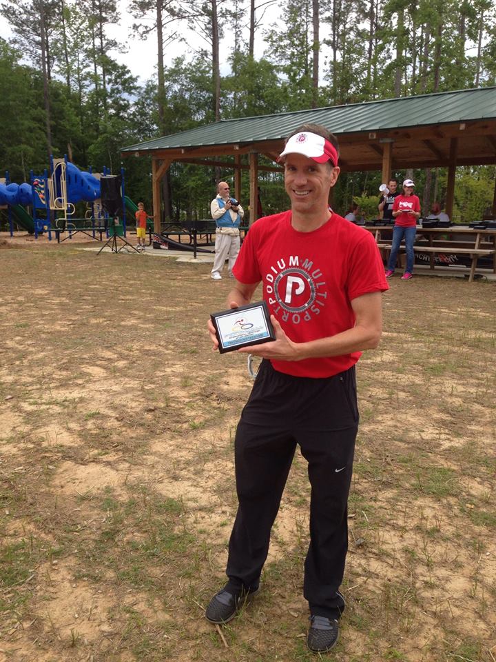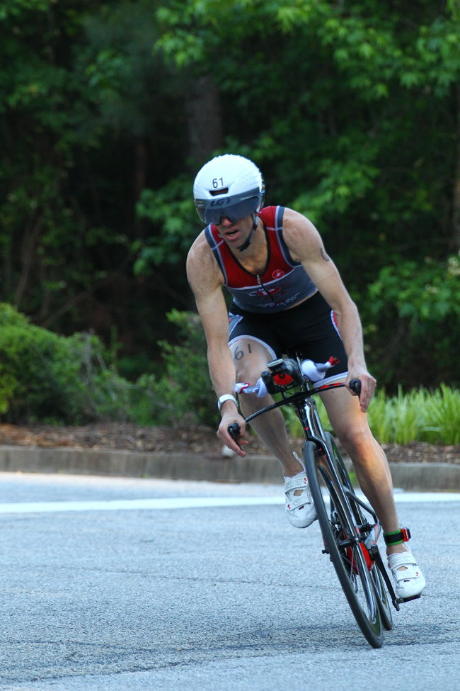 Got up at 3:30am and ate a quick breakfast of oatmeal, banana, blueberries, and a couple of eggs. Jumped in the car and headed 50 minutes south for Peachtree City. Rolled in just as check in and the transition opened up. Got set up pretty quickly. A freak cold front moved through the day before and it was very chilly for a May race: 43 degrees at the time of the race start. Yesterday was super windy and rainy, but today a least promised to be windless and sunny, eventually.