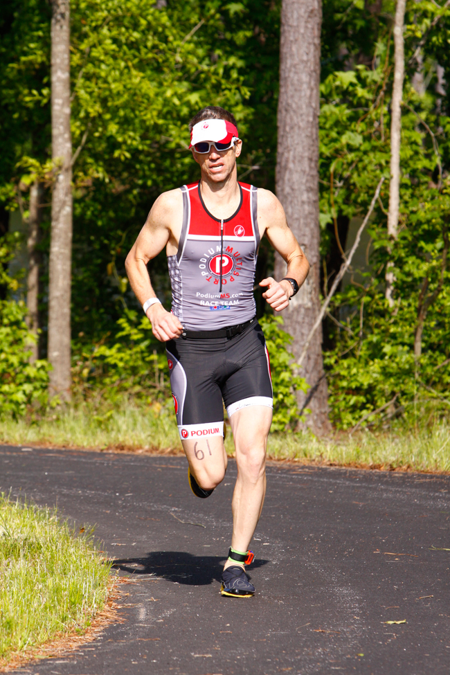 While it may have been a little chilly on the bike, it was AWESOME weather for a fast run. For the first mile it felt like I was having a tough time getting my legs stretched out, and my feet were all tingly from the cold - almost felt like they were asleep. Shook that off pretty quickly and got to work. I was fairly well in no-mans land, with none up the road. There were 3 out and back bits on the course though, so I could see I had a few of guys behind me that were making up the gap on the first two. That got me a little motivated and ultimately I was able to put a good bit of space between us in the last couple of miles. It was kinda weird though that I had no one up the road close enough to try and range in.