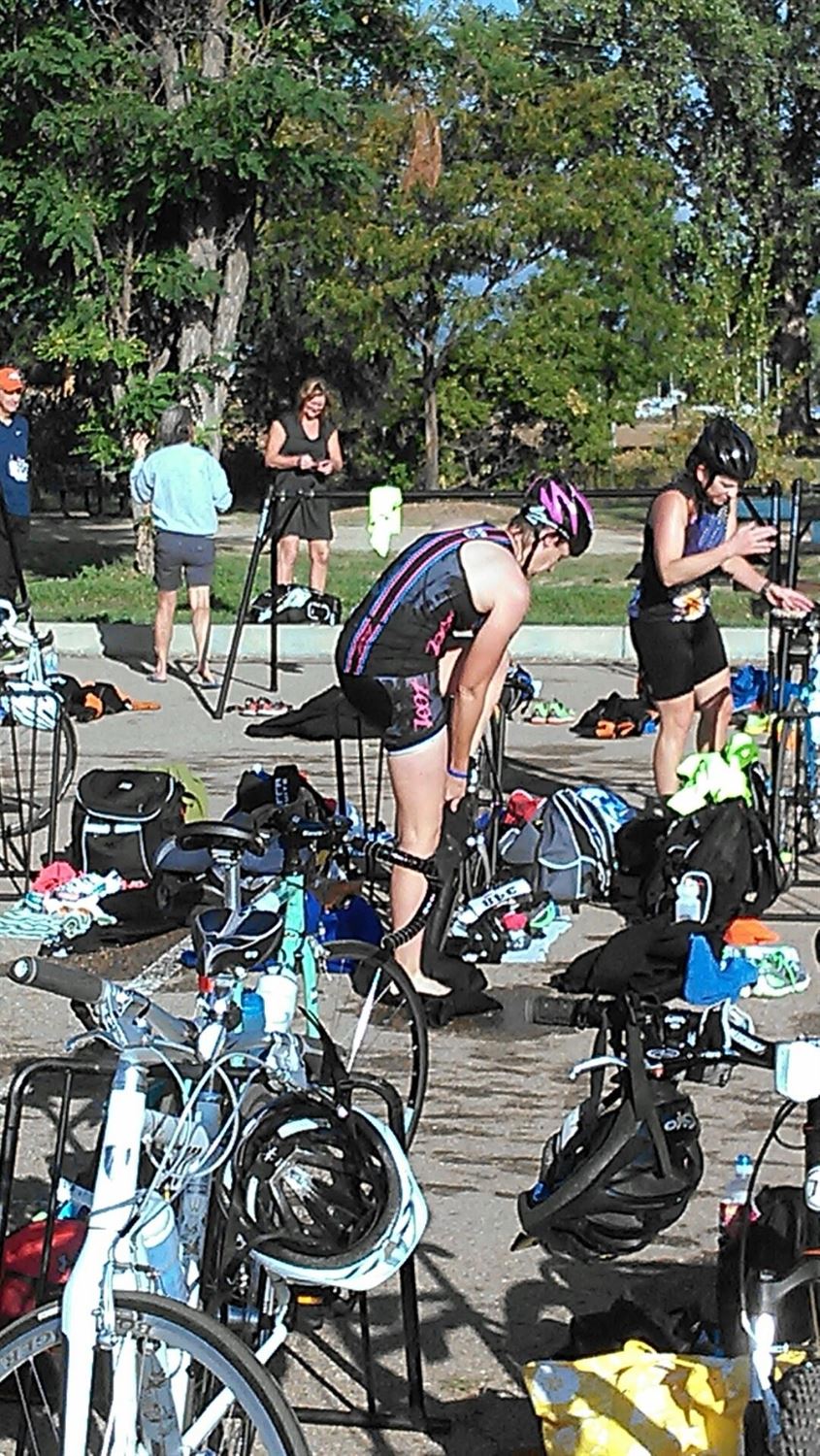 Comments: I had a bit of trouble finding my spot. I'd been looking for my unique purple bike/helmet and they were both with me :\ but I found it and got going on changing shoes. What would you do differently?: Practice all in/outs ![]() Run