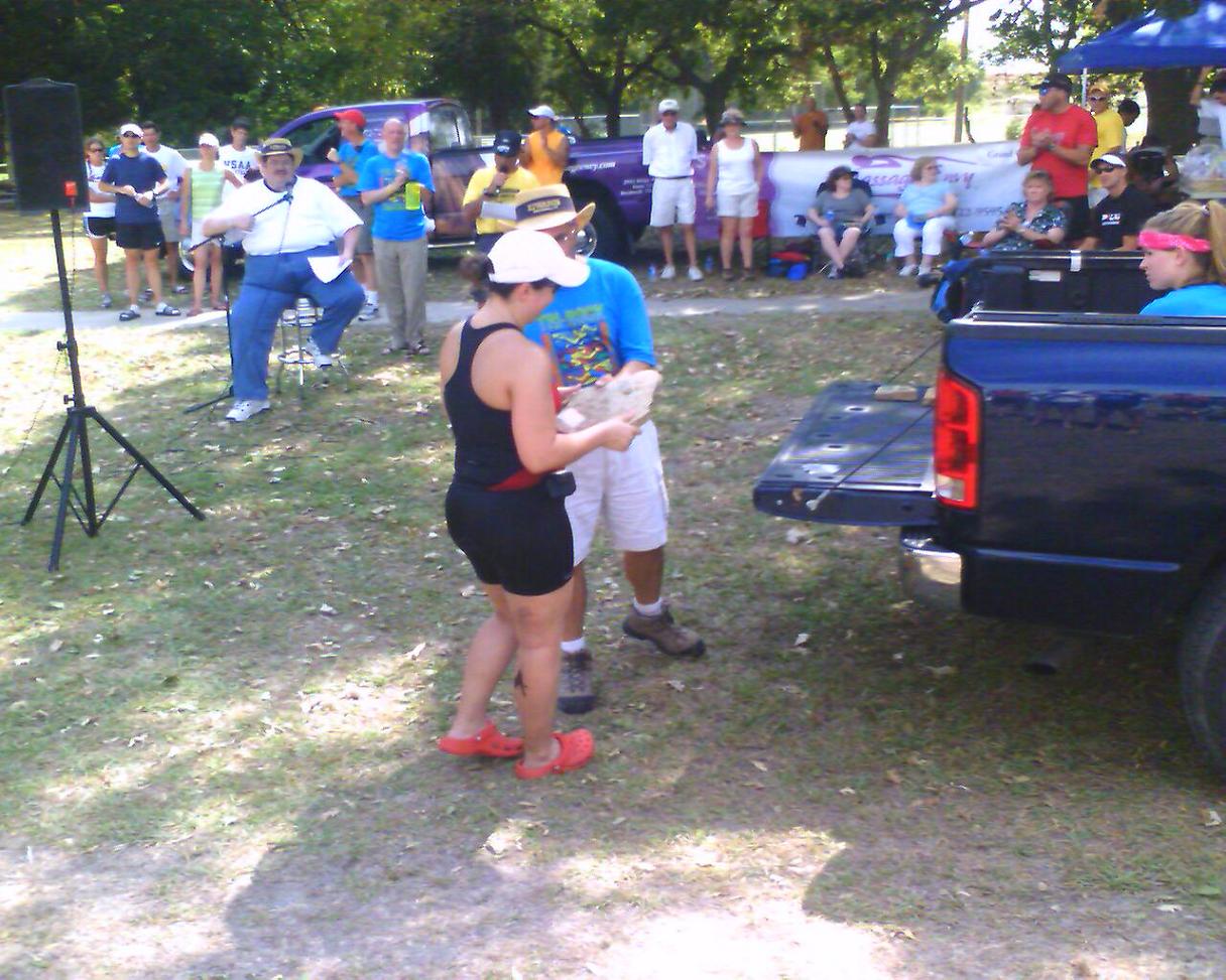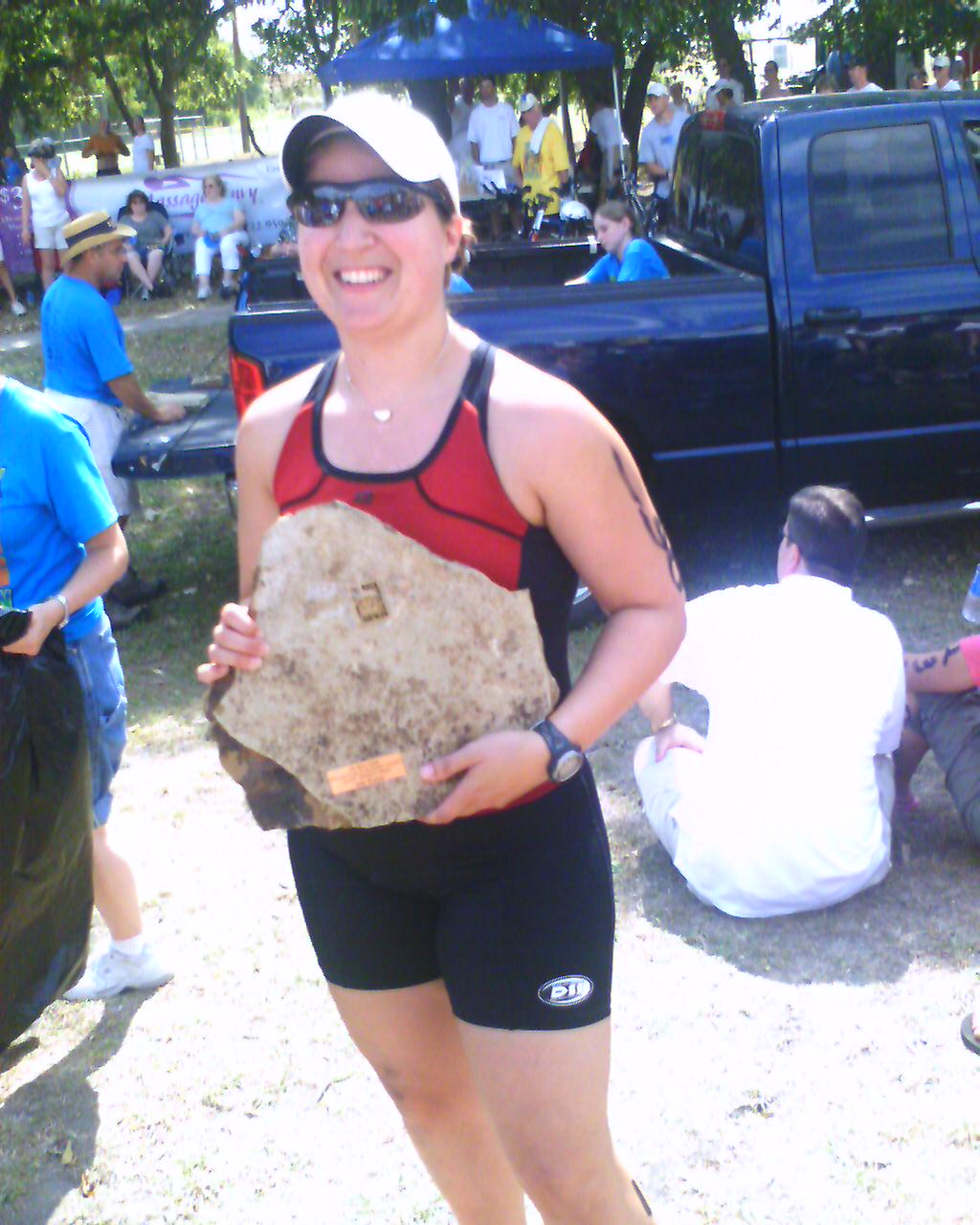 Warm down: GOD BLESS THE JOCKSTRAP!!!! John smuggled in some Shiner, so we stole some Gatorade cups from the aid station and poured us a couple...kinda tough pouring while keeping your hands inside the cooler to hide the hooch! Sat around, cheering the other racers in, and talking with the gang. Went to look up my times and HOLY CRAP!!! 3rd place Athena!!! I got a rock!!! What limited your ability to perform faster: Lack of training the past 3 months, not reading my race packet to know I need my race number on the bike. Event comments: Good race. I made the comment after the race that I would never race an Ironhead Productions race again because the RD was so strict. Looking back now, that was just sour grapes about the race number thing. Jack runs a tight ship and the results are well-run, organized races for racers of various abilities where very few people get injured. Can't complain about that. Thanks again to my 'Straps!!! You guys are the BEST!!!!!!! Last updated: 2006-08-02 12:00 AM