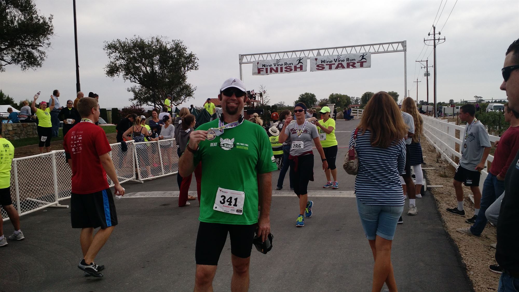 Having just ran a half marathon two weeks prior I was planning on going easy on this course. The elevation chart showed some rolling hills which could slow me down. From the start I settled into a comfortable pace and just enjoyed the scenery. Mile after mile of vineyards, scattered oak trees, and golden fields made for a scenic run.