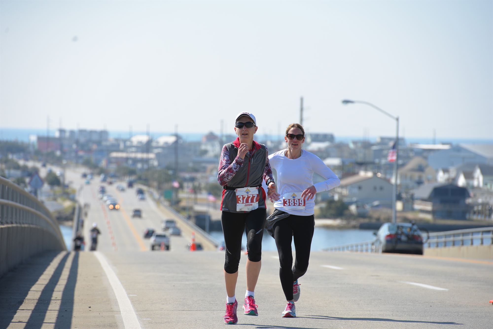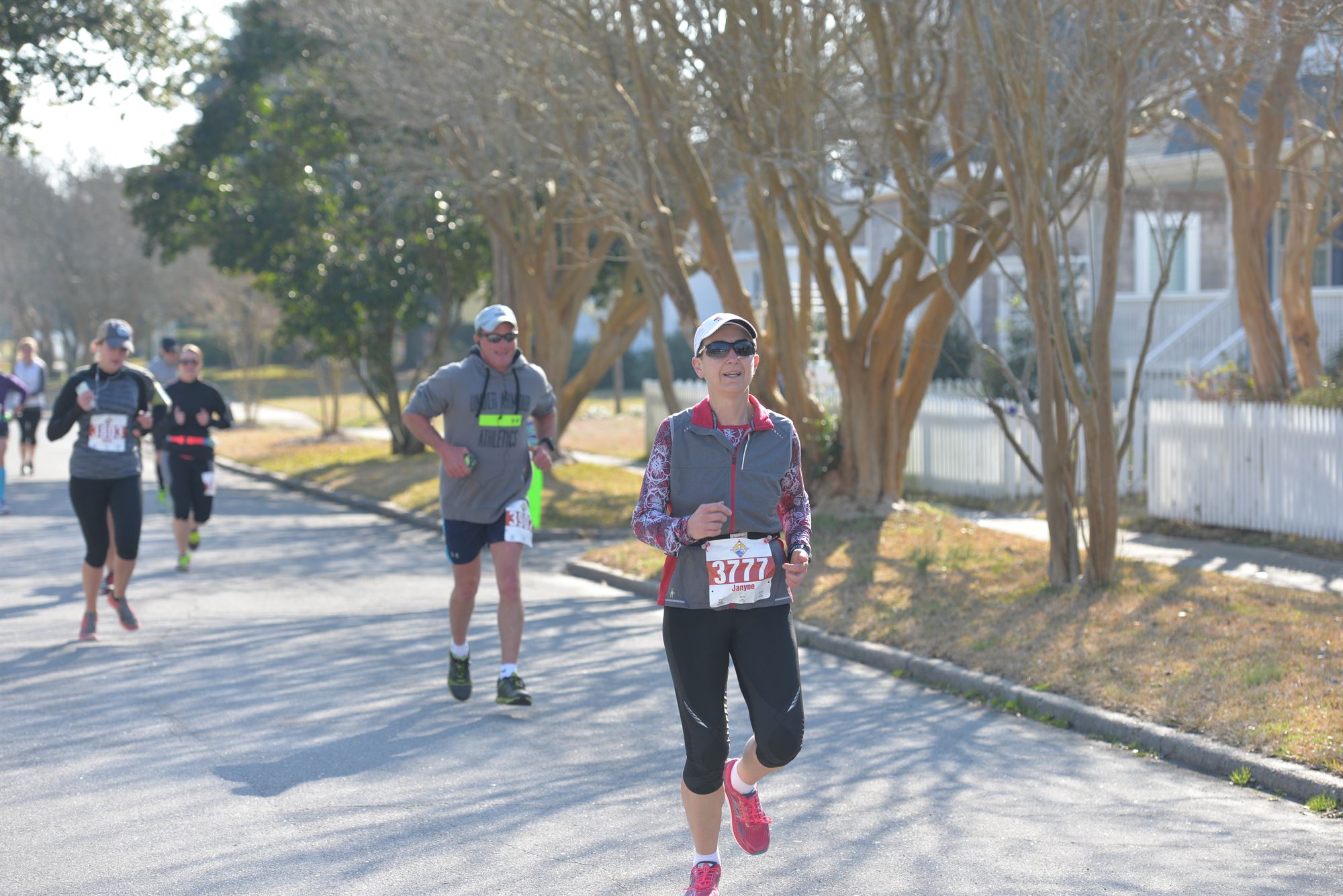 After Kevin dropped me off, I ran a loop of about two miles through downtown Morehead City, the same loop that starts the race. After my warm up run and looked for a gear drop for the vest because despite the fact that it was 39 degrees, I was on the warm side. No gear drop. Oh well, with the wind over the intracoastal, I wouldn't exactly overheat. Port-o-pots, water, strides, line up for the start and...