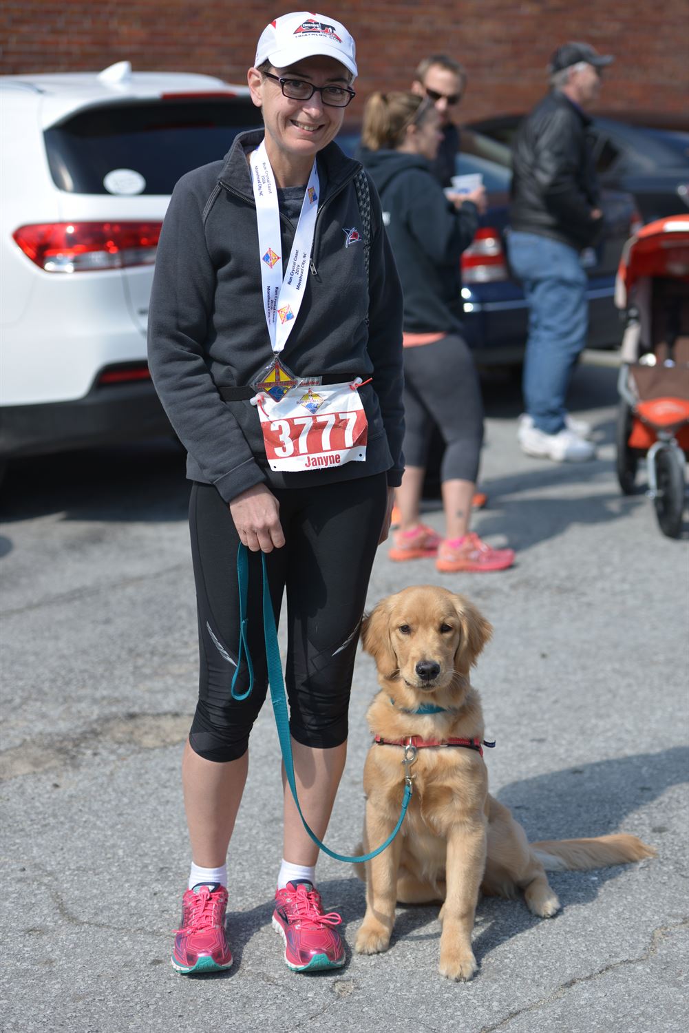 I got up at 6:30 to walk Zoe and eat breakfast. Then we hung around at the hotel until about 8:00 and Kevin dropped me off at the race start. Kevin and Zoe went back to the hotel and they met me at the finish.