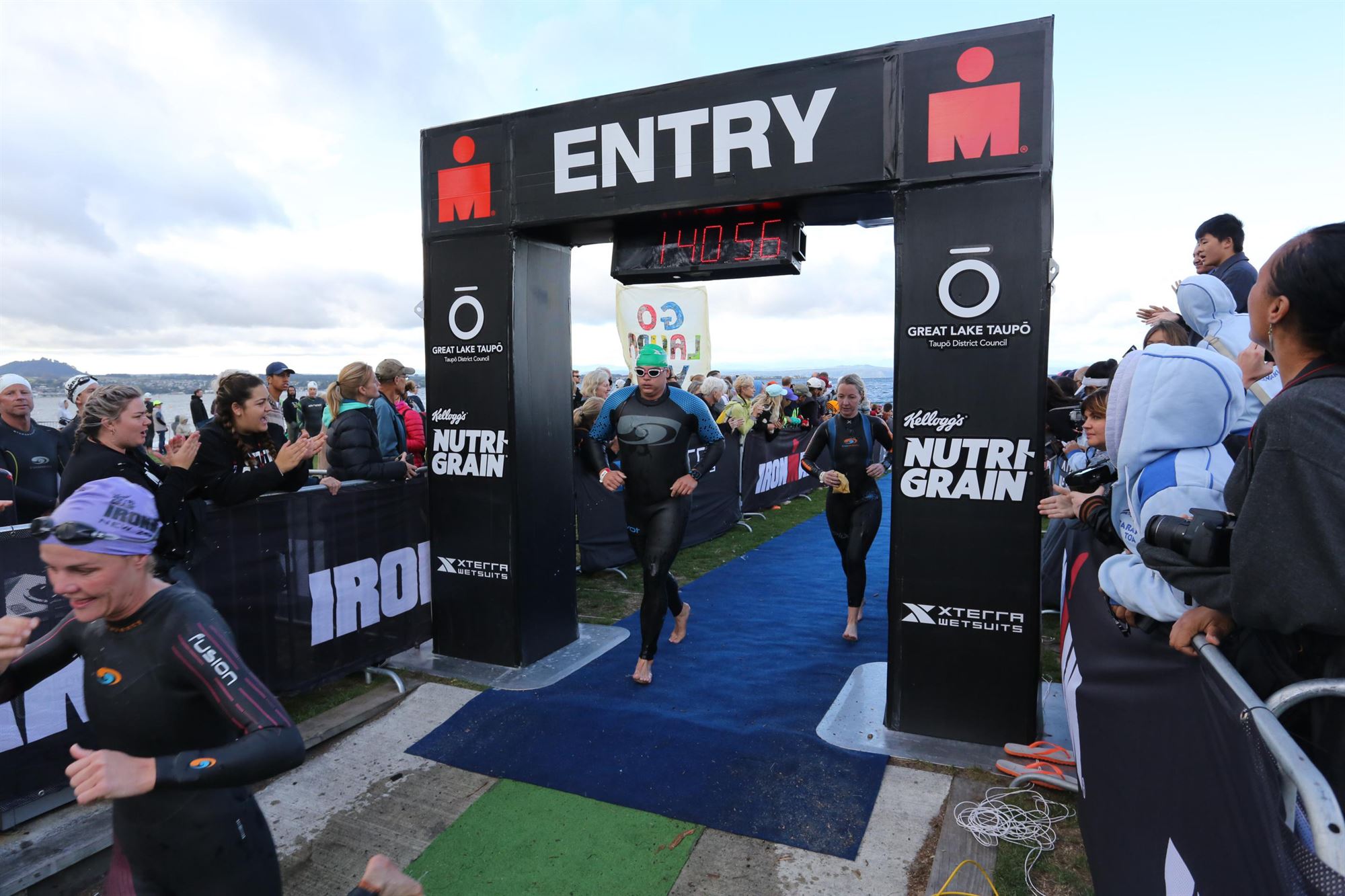 Comments: The week building up to IMNZ had been beautiful, calm weather. As I said above my training swims in the lake were like swimming in a pool. The day before the race the wind started to build. Come race day and it was brutal. When the 12 time winner of IMNZ says it was the hardest swim in 19 years he's done, you know it was tough. I started well, I got into my rhythm quickly. The westerly wind was coming over our right shoulder for the first part of the swim, so although the waters were rough I didn't find it too bad. I also prefer breathing to my left, so was turning away from the waves to breath which helped. I had a few issues with other swimmers trying to occupy the same piece of water as I was, but mostly just plugged along. Drafting was good for the most part. It seemed that I had managed to seed myself in about the perfect place, although I was overtaking some I was about the same speed as the majority of swimmers around me, so we all helped suck each other along. I wasn't using a GPS for the swim, as I was worried about battery life so was saving it for the run. But at the first turning buoy I checked my watch, 35 minutes gone very happy with my pace. Unfortunately this was where the day started getting hard. After the first turn we were aiming directly away from the beach, and directly into the waves. Honestly, I felt like I made no progress here, launching out the back of the waves, being thrown around it felt like all I could do was hold ground and not be driven back, it was like trying to swim at a surf beach. I did note however that compared to the swimmers around me I was holding my own. Finally got to the 2nd turning buoy, only 50m away and turned right to head back towards the start. This time however, the waves were coming from my left and ahead, so the going was much tougher. I made a few mistakes on this part of the swim, I noticed that the weather was pushing most of the swimmers inshore from the buoys so they were having to swim back out to get around each buoy. I tried to avoid that mistake and swim straight, but I over compensated and ended up too far off shore, almost on my own so lost any drafting and ending up swimming further than needed. I also swallowed (what seemed like) a lot of lake water. Not so much that I was in any danger on the swim or anything, but enough that it would effect my stomach for a long portion of the bike. Eventually I reached the final turning buoy and was able to aim at the swim exit. For this final 200m the waves were coming from almost behind, so this was the most enjoyable part of the swim. Once my hands started touching the bottom I stood, and waded out of the water, through the exit gate and into the crowd. 1 hour 25 minutes after the start, but 15 minutes slower on the 2nd half than the first. What would you do differently?: Overall I was happy with my swim. Conditions were brutal and I felt that I did the best I could manage. The only change I would make was better navigation on the 2nd half of the swim, I'm not sure how much extra distance I swam but I'm sure it made a difference. Also by ending up on my own I lost any drafting, so would have probably been better to swim a little further but stay in the pack. ![]() Transition 1