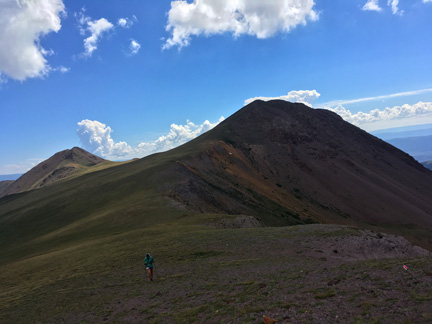 I had fallen in love with Ultra Adventures last year when I did my first 50 miler in Monument Valley. It's a very grass roots, desert runner vibe that was a nice break from all the marketing and corporate garbage that I'd been drowning in from the Ironmans I had done in the past. Their races have compositing toilets! How cool is that? Tushars seemed to draw me in because I had never raced way up in the mountains like that. Usually I'm way down in the desert sand, but something about those barren mountain tops was calling my name. Where I train in Austin, it's a whopping 400 feet of elevation. The Tushars race was up to 12,000+ feet, so a marathon sounded more realistic for me than an ultra. The night before the race, I got up and walked 50 feet to the bathroom and was out of breath. The race starts out at the Eagle point ski resort on a short downhill before quickly turning up. If you look at the elevation profile on the course website, you'll see that the entire thing is up or down, with basically no flat areas. Friendships are made and nicknames are given and accepted within the first 800 meters. I'm right alongside my friend "cactus" for nearly the entire race. The course is exceptionally well marked, except for one area where I end up on another trail with a girl who was unwise enough to blindly follow me. After a while I say to her "I'm seeing fewer human prints and more and more cow prints...." so we make the decision to bush wack our way up the side of the mountain until we find the main trail again. The course is beautiful. Every mountain we scale yields incredible views. Nothing man made is visible in any direction, just massive peaks. People stop every once in a while just to turn around and take pictures. One lady even has a video camera that she tries to hold steady while she's running. The aid stations are 7 miles apart, so I've got my hydration vest packed with goodies, and make sure to top off all available tanks at each aid station. There are old abandoned log cabins in the middle of this vast wilderness. What a place to call home. Maybe 12 miles in, we've separated and reconvened into small groups. My group is having a ball, laughing, talking about this and that, but as it becomes rather steep, it gets very quiet very fast. We look up and see nothing up peaks stretching up to the heavens, and wonder which one we'll be scaling. As it turns out, the peak we're scaling is one that is even higher than the ones we're looking it, it's just hidden behind them. We trudge our way up, gasping for air with each step. There are no more trees, and even just 2 days shy of August there are still piles of snow. My calf muscles send me a clear message, and that message is "LOL. Um, what....?"