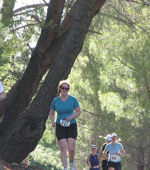 Comments: Derreck again getting footage.... I probably ran at least 85-90% of coarse, but so dreadfully slow that everyone passed me. because I seated myself up close (because of the swim) I had alot of people to pass me. I was feeling rather discouraged when a pick up truck came slowly in with 3-4 ladies in the back holding their bikes. "At least I am not in the sag wagon" I said to myself and eveyone passing me.... I noticed tons of women who do not wear sufficient bra support - why is that? and once I focused on the underwear issues, I saw alot wearing panties under the tri-shorts. why??? Ok, now that I see my time and my pace, it is official - I walk faster than I run. What would you do differently?: run faster if I only knew how? Bring my cowboy hat! ![]() Post race