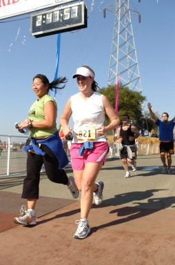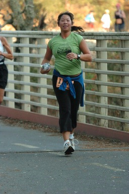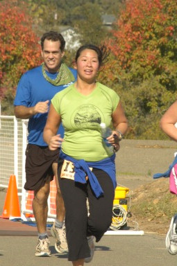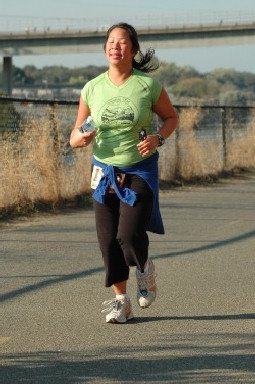 Comments: Mile 1: 11:00, you're kidding right? What the hell am I doing? There's still 12.1 miles to go! Mile 2: 11:30, still too fast, slow it down Mile 3: Still 11:30, that's fast, but it's not feeling fast Mile 4-5: Keep plodding Mile 6: Ok, at mile 7, you're allowed to walk Mile 7: Well, made it this far, run to mile 8 Mile 8: Oh c'mon, why not mile 9? Mile 8.5: Ok, legs dying, better start walking Mile 9: Met Janet Rest of race: If it were not for Janet, I would have walked the rest of the race. We pushed each other just enough to run/walk the rest of the race. And we even got this guy Steve to finish with us. :) The PPEs got me through the first 1:30 (mainly because that's what I needed to finish my October challenge goal)! Honestly, it was Janet that got me through the rest of the race. Wherever she is, I owe her a huge THANKS! The weather was perfect. The start of the run was a bit cloudy and overcast. But as the race went on, the sun came out but it was still cool. It was a little warm towards the end, but not uncomfortable. After seeing all the pictures from the race, I think I might run with my eyes closed. Of the 7 pictures they got of me, in 5 of them, I have my eyes closed. :) ![]() Post race